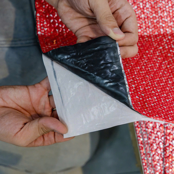 Đây là một loại vật liệu cách âm cao su non butyl kết hợp với lớp nhôm (foil nhôm) ở trên cùng. Nó được thiết kế để dán trực tiếp lên các bề mặt kim loại của xe như cửa xe, sàn xe, trần xe, vách ngăn khoang máy, và cốp xe.