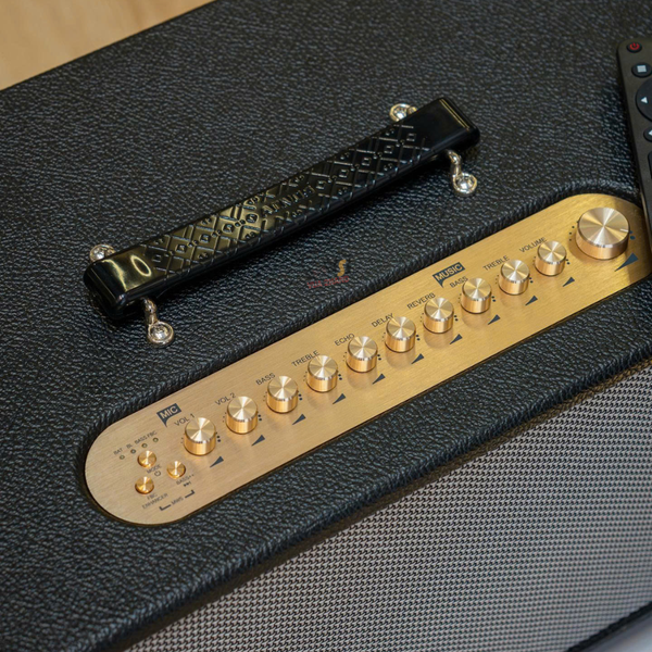 Micro: Kèm theo 2 micro không dây UHF cao cấp (vỏ nhôm), hút âm tốt, nhẹ hơi, dễ hát.