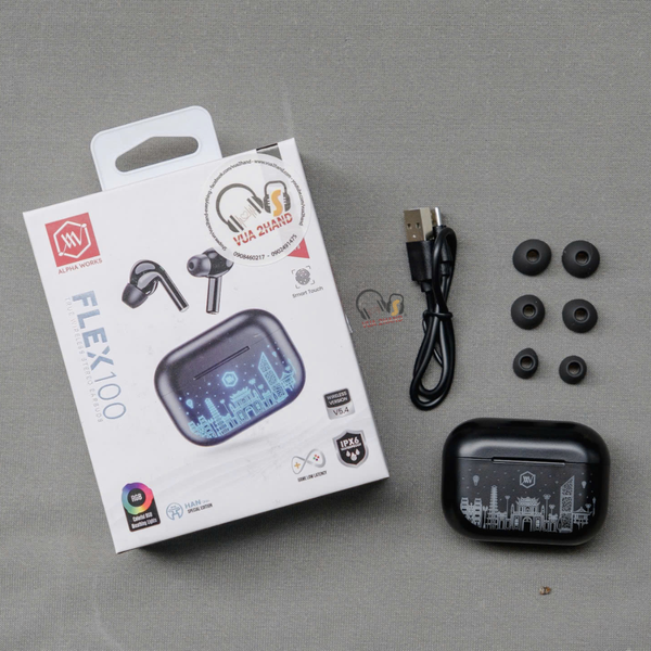 Alpha Works FLEX 100 là mẫu tai nghe True Wireless Stereo (TWS) thuộc thương hiệu Alpha Works, một thương hiệu con của tập đoàn Harman. Sản phẩm này hướng đến người dùng trẻ, năng động, với điểm nhấn là thiết kế độc đáo, khả năng tùy biến cao và chất âm được tinh chỉnh theo tiêu chuẩn của Harman.