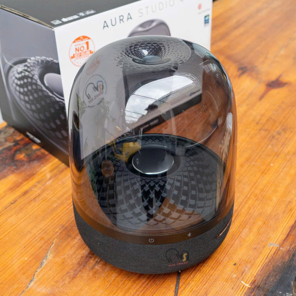 - Harman Kardon Aura Studio 4: Điểm mạnh lớn nhất của Aura Studio 4 chính là thiết kế độc đáo và nghệ thuật. Với mái vòm trong suốt và hiệu ứng đèn LED "kim cương" bên trong, chiếc loa này không chỉ là một thiết bị âm thanh mà còn là một món đồ trang trí nội thất ấn tượng. Hiệu ứng ánh sáng có thể thay đổi theo nhịp điệu âm nhạc, tạo ra một không gian sống động và bắt mắt.