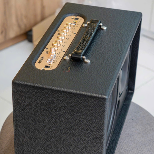 Chất liệu: Vỏ gỗ bọc da (simili) màu đen hoặc nâu, nhìn khá sang và chuyên nghiệp chứ không hề có cảm giác "nhựa rẻ tiền".