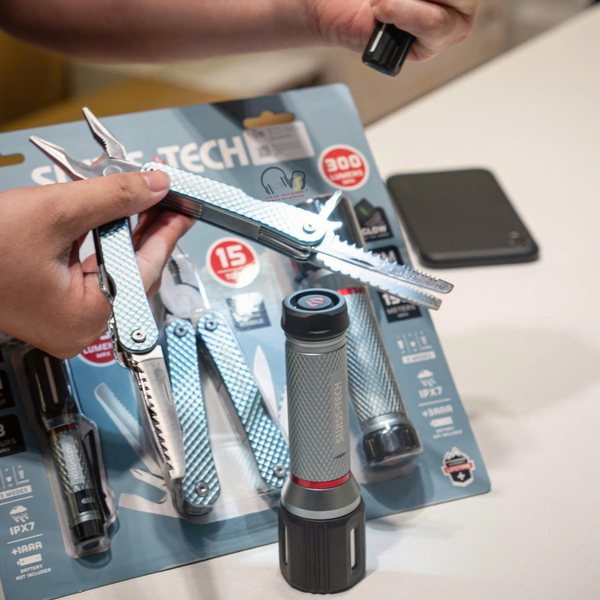 Tính Đa Năng Cao: Bộ sản phẩm cung cấp một loạt các công cụ thiết yếu (kìm, dao, tua vít) và khả năng chiếu sáng mạnh mẽ (hai đèn pin khác nhau), giúp xử lý hầu hết các công việc sửa chữa nhỏ, lắp đặt hoặc nhu cầu sinh tồn cơ bản.