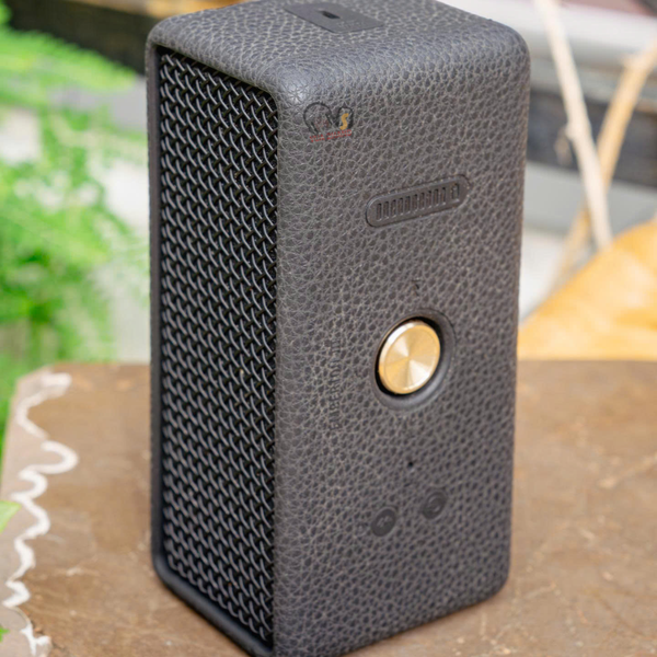 Phong cách Marshall: Loa mang vẻ ngoài không thể nhầm lẫn của Marshall với lưới tản nhiệt bằng kim loại, logo "Marshall" viết tay màu trắng nổi bật, và lớp vỏ ngoài bằng silicone chống trơn trượt.