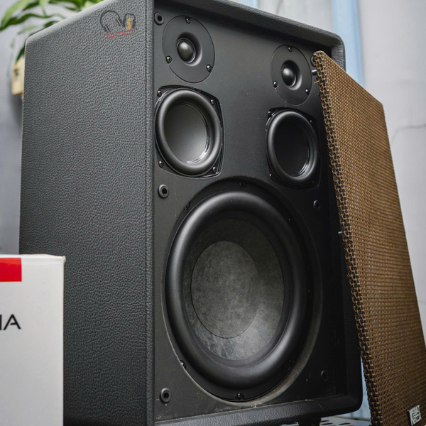 Thiết kế: Thùng loa được làm từ gỗ bọc da cao cấp (thường có hai màu Nâu và Đen), mang lại vẻ ngoài sang trọng, tinh tế như một món đồ nội thất.