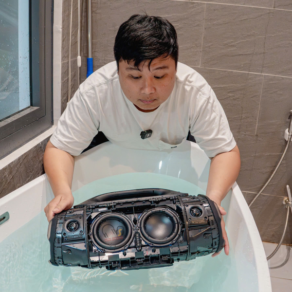 Loa có thể nổi: Tùy vào thiết kế và trọng lượng, các loa lớn như Boombox thường có xu hướng nổi trên mặt nước (hoặc lơ lửng nếu bị ngâm).