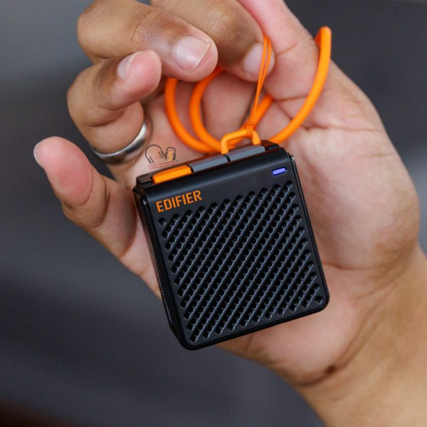 Thiết kế siêu nhỏ gọn: Đây là điểm nhấn lớn nhất của sản phẩm. Loa có kích thước chỉ 52 × 28.5 × 63mm và trọng lượng cực nhẹ, chỉ khoảng 70g. Nó đi kèm một dây buộc màu cam, giúp người dùng dễ dàng móc vào balo, túi xách hay thậm chí là túi quần để mang đi khắp nơi.