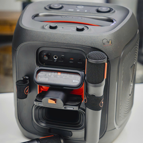Sử dụng loại pin có thể tháo rời và thay thế, mang lại sự tiện lợi và linh hoạt tối đa cho các buổi tiệc kéo dài.