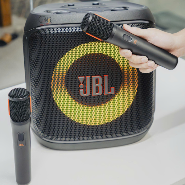 Đi kèm 2 micro không dây chất lượng cao (được nâng cấp, có thể sạc lại), cho phép hát song ca hoặc giao lưu dễ dàng.