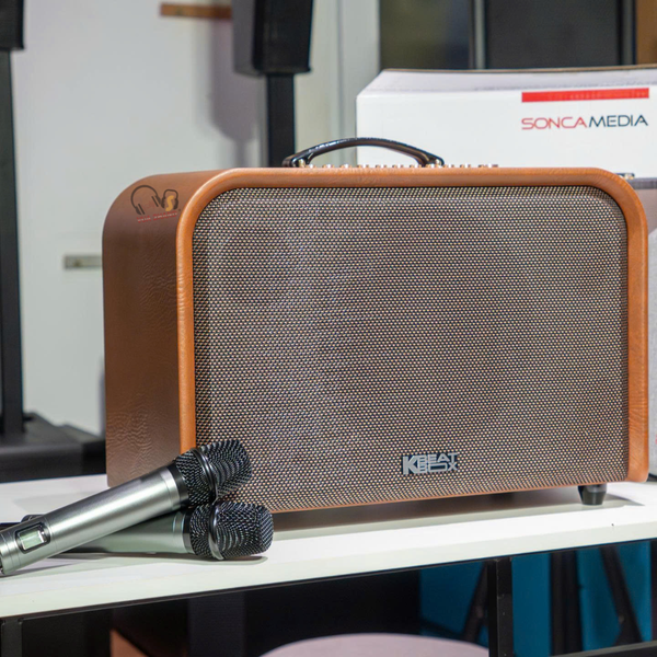 Micro không dây UHF cao cấp: Đi kèm 2 micro không dây vỏ nhôm, có sóng khỏe, độ nhạy cao, bắt âm tốt và chất âm trung thực.