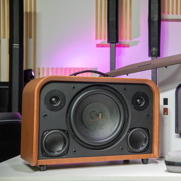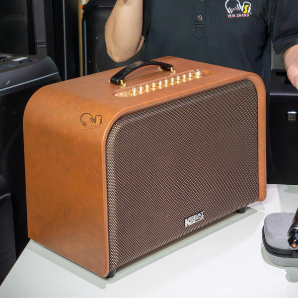Thiết kế cao cấp: Loa có thùng gỗ được bọc da sang trọng với các đường nét bo tròn mềm mại. Có nhiều tùy chọn màu sắc hiện đại như Kem, Nâu da bò, và Đen.