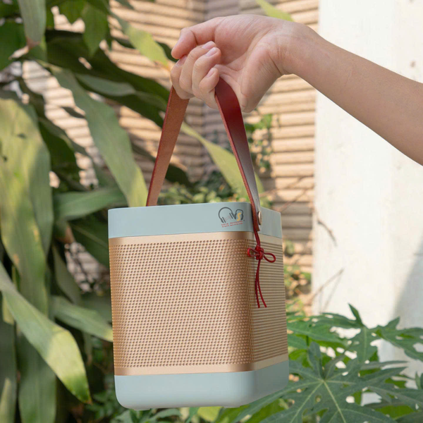 Thiết kế sang trọng, vượt thời gian: Kiểu dáng "hộp cơm" (lunchbox) đặc trưng với quai xách bằng da thật, lưới nhôm bền bỉ và chất liệu nhựa polymer cao cấp. Nó không chỉ là loa mà còn là một món đồ trang trí nội thất đẳng cấp.