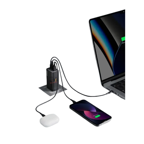 Sạc 3 cổng đồng thời: Tổng công suất 120W được chia sẻ thông minh giữa cả 3 thiết bị.
