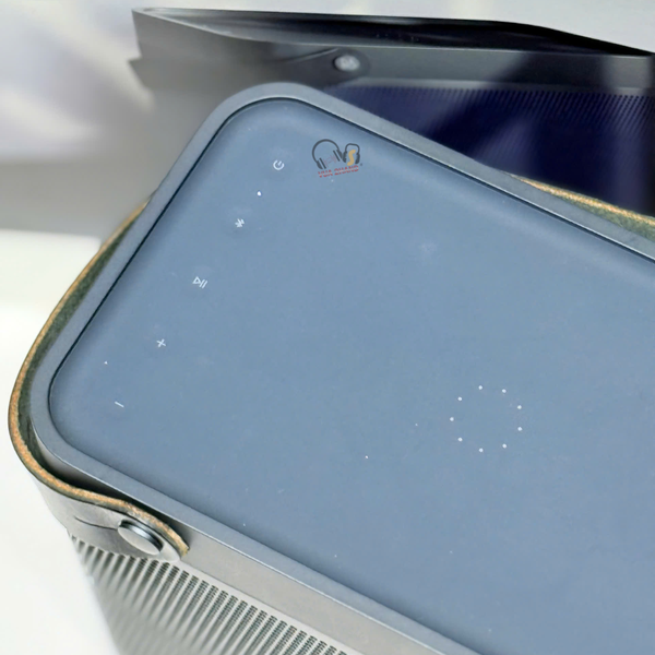 Đây là điểm nhấn độc đáo nhất của Beolit 20. Mặt trên của loa được thiết kế lõm nhẹ và tích hợp đế sạc không dây chuẩn Qi.