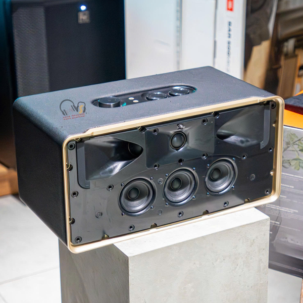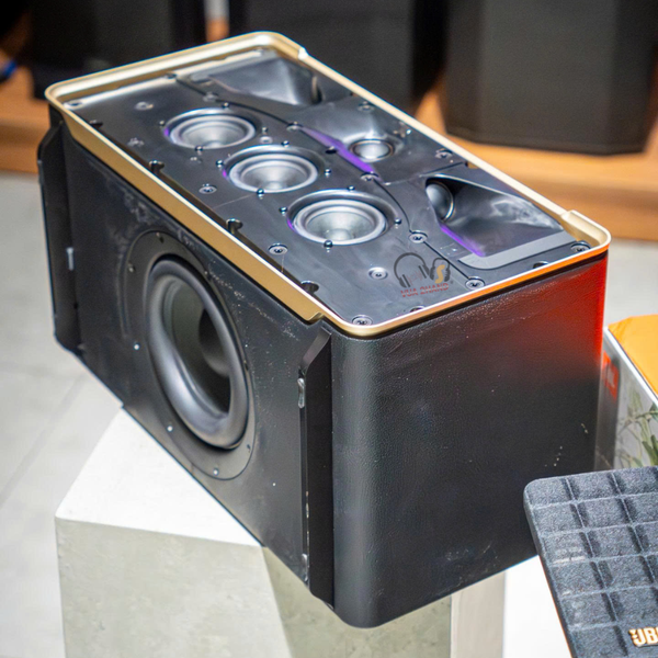 Phong cách Retro đặc trưng: Loa sở hữu thiết kế lấy cảm hứng từ các mẫu loa kinh điển của JBL những năm 1970, nổi bật với lưới tản nhiệt Quadrex tạo hình vuông khối độc đáo và đường viền nhôm tinh xảo.