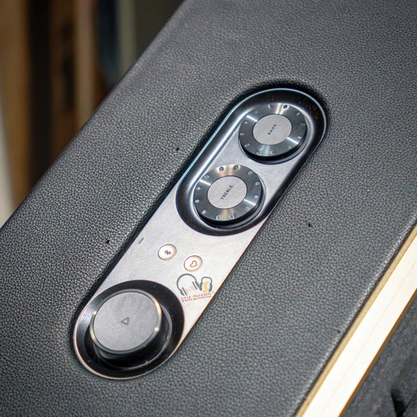 Chất liệu cao cấp: Thùng loa được bọc lớp giả da màu đen, mang lại vẻ ngoài sang trọng, cao cấp, cùng với các chi tiết kim loại làm tăng tính thẩm mỹ và độ bền.
