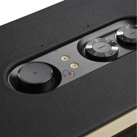 Chất liệu cao cấp: Thùng loa được bọc lớp giả da màu đen, mang lại vẻ ngoài sang trọng, cao cấp, cùng với các chi tiết kim loại làm tăng tính thẩm mỹ và độ bền.