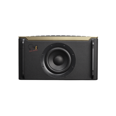 Phong cách Retro đặc trưng: Loa sở hữu thiết kế lấy cảm hứng từ các mẫu loa kinh điển của JBL những năm 1970, nổi bật với lưới tản nhiệt Quadrex tạo hình vuông khối độc đáo và đường viền nhôm tinh xảo.