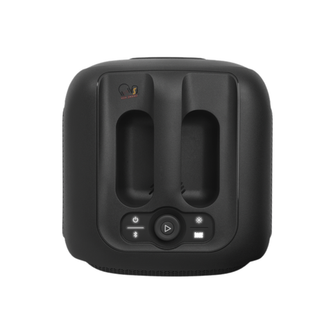 Nút điều khiển: Các nút bấm được bố trí ở mặt trên, bao gồm: nút nguồn, nút Bluetooth, nút điều chỉnh đèn LED và một núm xoay lớn để chỉnh âm lượng (ấn vào để Play/Pause).