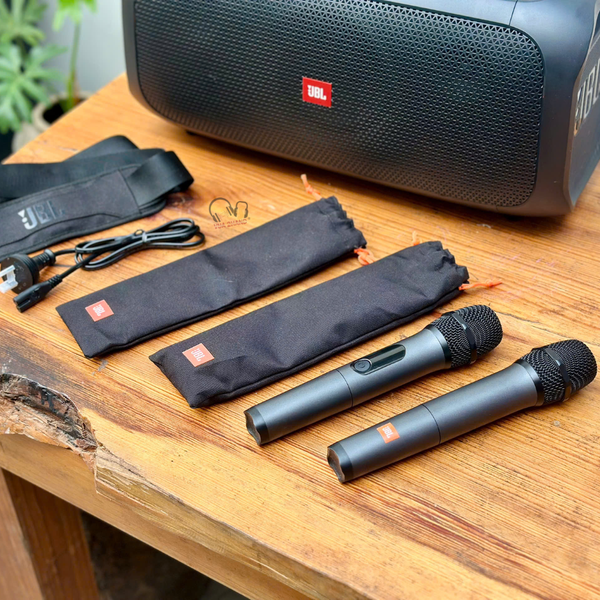 Tính năng karaoke chuyên nghiệp: Điểm nhấn đặc biệt của PartyBox On-The-Go là khả năng hát karaoke cực đỉnh. Sản phẩm được đi kèm với hai micro không dây chất lượng cao, giúp bạn và bạn bè có thể thỏa sức thể hiện tài năng ca hát. Các nút điều chỉnh âm thanh micro được tích hợp trên loa, cho phép bạn tùy chỉnh hiệu ứng, âm lượng một cách dễ dàng.