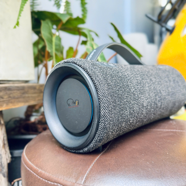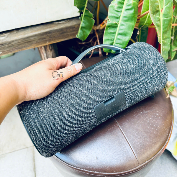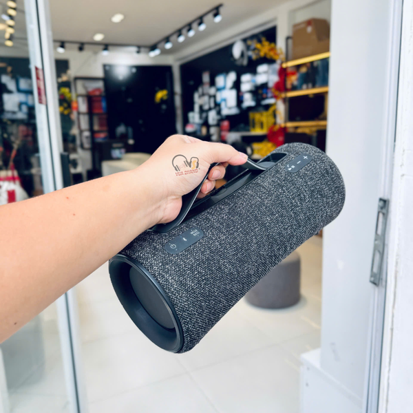 Chất liệu cao cấp: Toàn bộ thân loa được bọc vải lưới tinh tế, mang lại cảm giác sang trọng và chắc chắn với trọng lượng khoảng 3 kg.