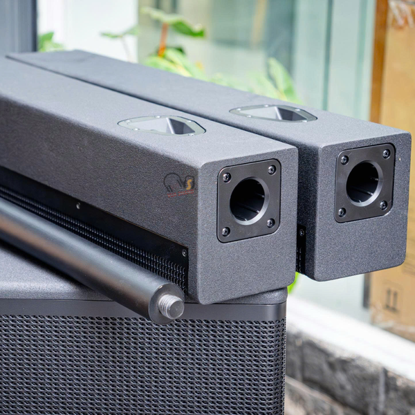 Cột Loa Array (Column Array): Đây là điểm nhấn của hệ thống, bao gồm một dãy các củ loa toàn dải (full-range) nhỏ hơn (thường là 6 x 2.75 inch hoặc 8 x 2.75 inch Neodymium). Thiết kế dạng cột này giúp phân tán âm thanh đồng đều theo chiều ngang (rộng) và tập trung theo chiều dọc (tránh âm thanh bị dội trần/sàn), mang lại độ rõ nét tuyệt vời và giảm hiện tượng feedback.