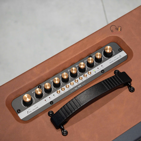 Thiết kế: Phong cách cổ điển, tinh tế với thùng loa bọc da cao cấp (có nhiều màu như Đen, Nâu, Đỏ Burgundy, Kem) và lưới ê-căng vải họa tiết caro.